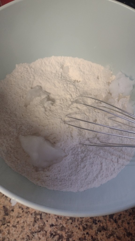 Start by combining the flour, sugar, and 1 tsp salt in a food processor and just barely pulse to combine. Add in the 1/2 cup coconut oil and continue pulsing until the mixture looks crumbly, but will stick together when you squeeze it. Pulse in 1/3 cup of ice water, adding more if necessary. On a lightly floured surface, knead the dough unto a ball, wrap it with plastic wrap, and let it chill in the refrigerator.