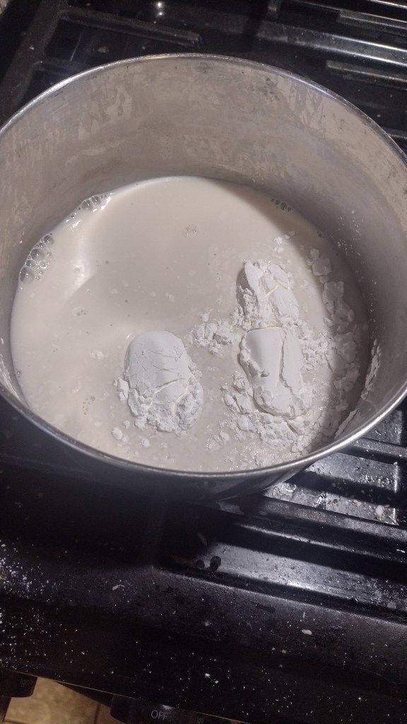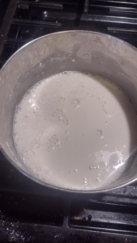While the dough is chilling, begin working on the pumpkin filling. Preheat the oven to 350F. In a small saucepan, combine the almond milk and cornstarch. Whisk them until combined. Add the maple syrup, then bring the pot to a simmer over low or medium-low heat. Whisk until the mixture thickens. Turn the heat off and add the pumpkin, coconut oil, vanilla, spices, salt, and a dash more maple syrup, stirring it all together.