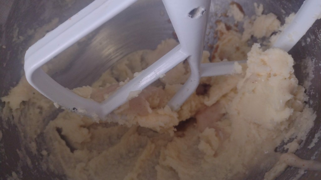 3. In a separate bowl, measure out the flour, tea leaves, salt, and baking powder. Stir, then slowly add to the butter mixture until a soft dough forms.