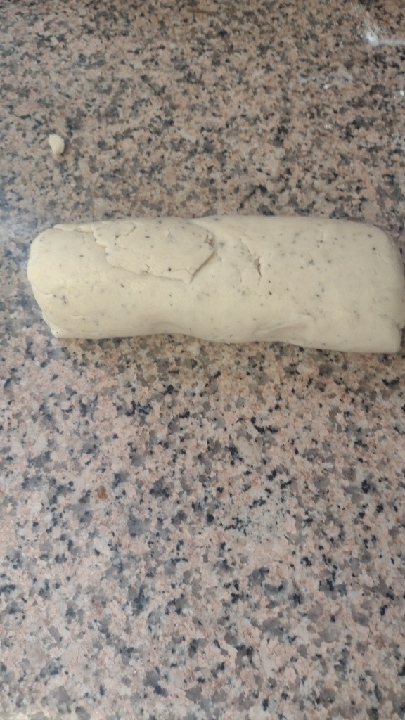 4. On a clean work surface, roll the dough into a log and wrap it with plastic wrap. Refrigerate the dough for at least 2 hours.