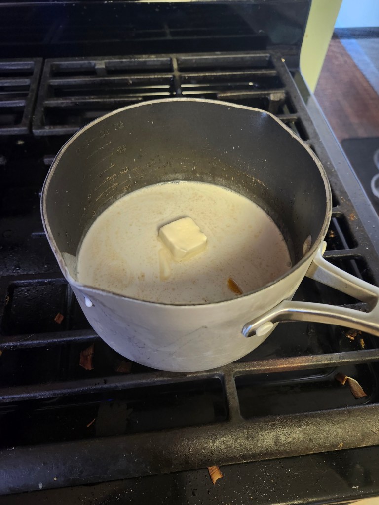 Now on to the sauce. Simply place all the ingredients into a heavy pot and bring it to a boil. Then, once your cake is out of the oven, pour the sauce over it immediately.