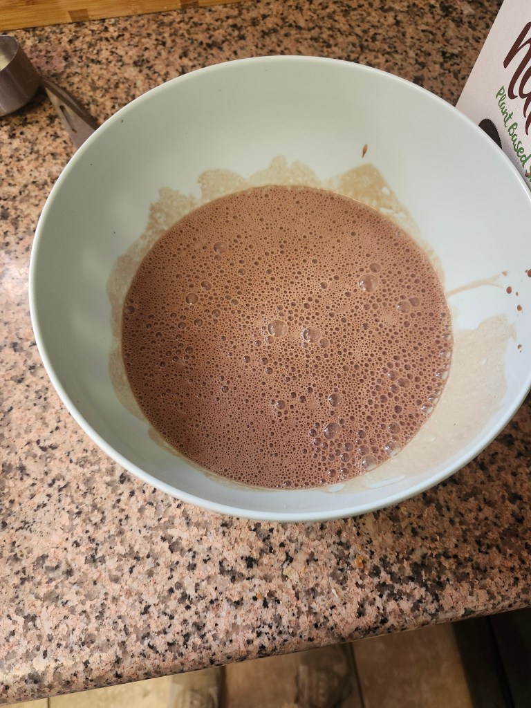 First, in a blender, combine the non-dairy milk, cocoa powder, sugar, salt, vanilla extract, and cornstarch. Blend until everything is smooth and dissolved.