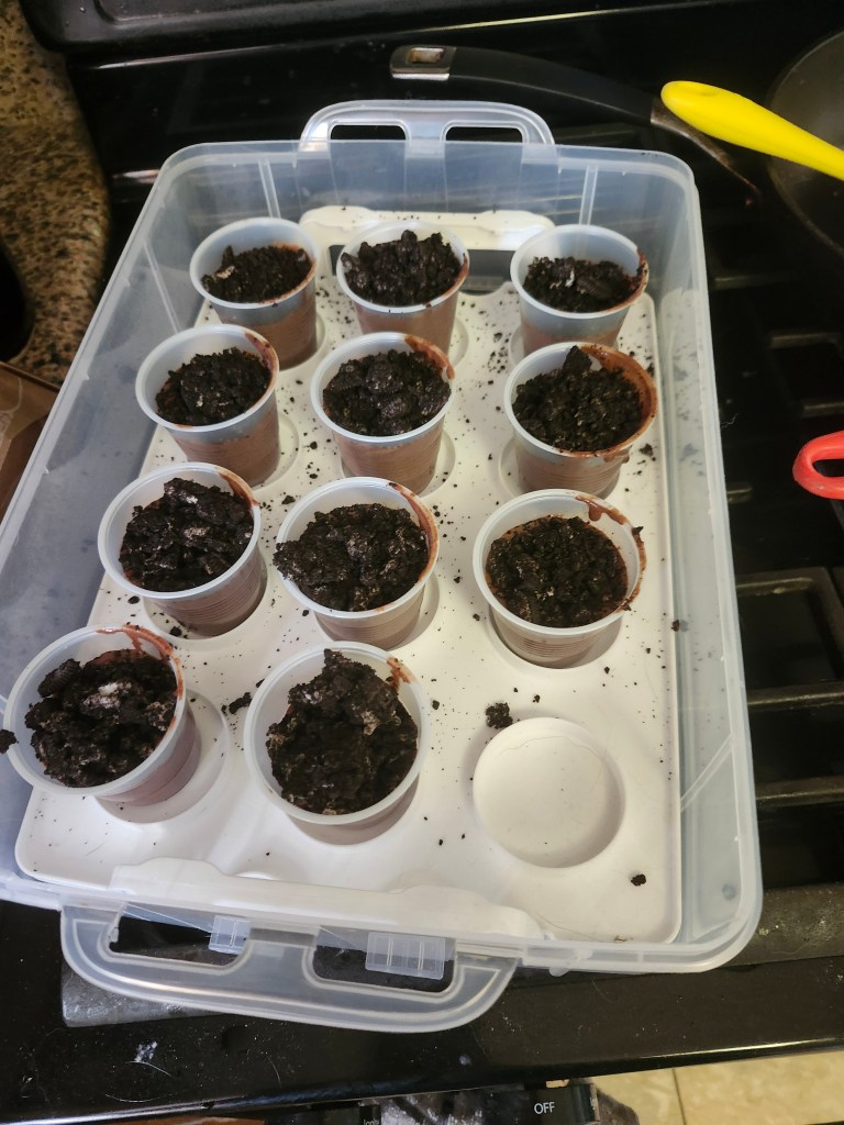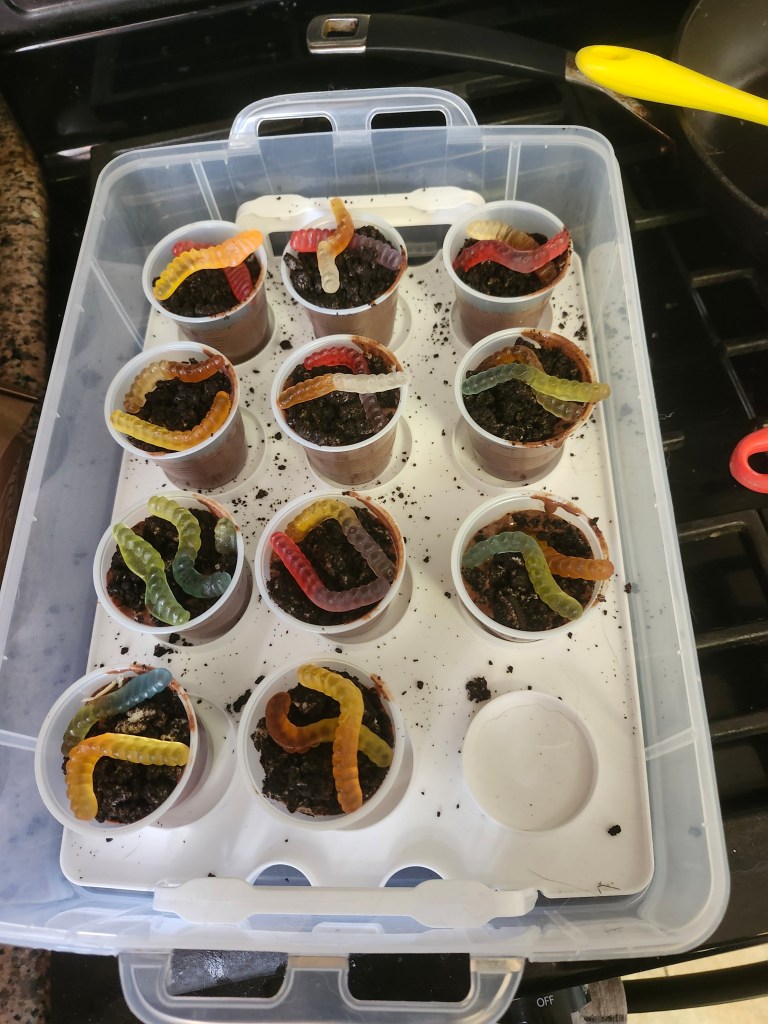 This is a veganized version of a classic – cup o’ dirt!! With chocolate pudding, oreos, and vegan gummy worms.