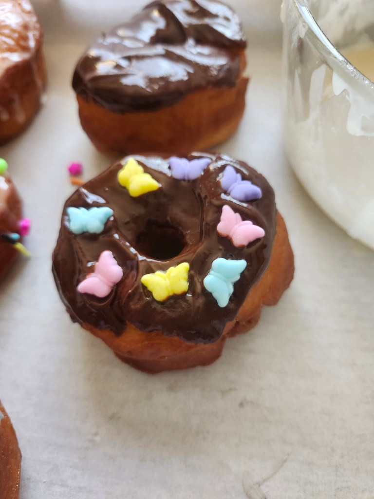 Personally, I struggle with yeast products, but after using the breadmaker for the first rise, it was much easier. BUT if you’re also having a hard time, here’s what I did that worked well. Preheat your oven to the LOWEST TEMPERATURE POSSIBLE. Once it’s preheated, and the donuts are ready for a second rise, turn the oven off, but keep the oven light on, and set the donuts to rise in that now warm oven. It will cool off while the donuts rise, but maintaining some heat helps with the rise.